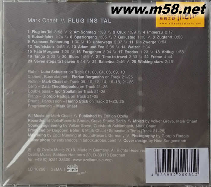 產品名稱:  馬克.查艾治 [山谷飛行] Mark Chaet [Flug Ins Tal](小提琴、長笛、單簧管、大提琴)   [CD]