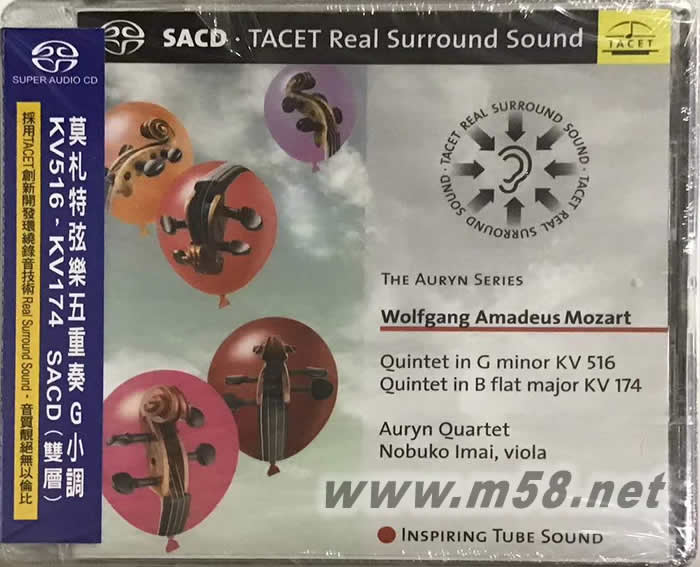 莫札特弦樂五重奏G小調 KV516, KV174 SACD(劉漢盛推介 超越巔峰200擊入圍CD)紅色封面(m58.net) 發現二張很棒的莫札特弦樂五重奏,很棒的原因是錄音與演奏都很好,錄音的好可以很客觀的去評量,而演奏詮釋的好那就很個人化,至少我認為很好。 這是德國Tacet的錄音,這家唱片公司的錄音效果早就存在音響迷心目中,尤其是採用真空管設備的錄音。不過,他家的錄音並非全部採用真空管設備,但聽起來其實都相當不錯。 這二張莫札特的弦樂五重奏是一系列Auryn Quartet與中提琴手Nobuko Imai(今井信子)與Tacet合作的作品,共有Tacet 223、224、225三張,演出六首弦樂五重奏,我只拿到其中二張223與224,我相信225也應該一樣精采。 莫札特的弦樂五重奏是在弦樂四重奏之外再加一把中提琴,形成二把小提琴、二把中提琴、一把大提琴的編制。照理說,弦樂四重奏的編制已經是最平衡的配置了,無論是樂器的音量、和聲都已經達到千錘百鏈的地步,從古到今所有的古典音樂作曲家也都把弦樂四重奏當作重要的作品來寫。不過,莫札特偏偏再加一把中提琴,變成二、二、一的編制,這可以說是莫札特獨到之處,也可以說他對和聲的看法。二把中提琴所演奏出來的中低音域厚度比弦樂四重奏要厚許多,聽起來整體的和聲效果也更豐富。其實,這樣的弦樂五重奏雖然是莫札特第一個撰寫,但也不是莫札特的專利,貝多芬也有寫二把小提琴、二把中提琴與一把大提琴的弦樂五重奏(四首),舒伯特的弦樂五重奏D.956也很著名(雙小提琴、中提琴、雙大提琴)。其余還有二把小提琴、一把中提琴、二把大提琴的弦樂五重奏,或者二把小提琴、一把中提琴、一把大提琴、一把低音提琴的弦樂五重奏(德弗札克),柏林愛樂弦樂五重奏團就是這樣的編制。 以前Philips唱片有葛羅米歐三重奏再加上二位演奏家的版本,那也是三張一套,相當不錯。其他許多著名的弦樂四重奏很多也都有演奏這六首弦樂五重奏,所以可以挑的版本其實不少。而Tacet這三張的莫札特弦樂五重奏演奏十分細膩,優雅,平衡,和聲效果豐富,而且琴音真實。請注意,我所謂的真實其實就是非常美的意思,那五把琴的聲音細致柔美,散發出非常迷人的弦樂味道,除了該有的光澤與甜味,還帶著內斂的木頭味,聽起來非常舒服,絕對是很棒的錄音。如果您聽這二張弦樂五重奏宛如喝白開水,一點迷人的味道都沒有。或者音樂聽起來蒼白貧血,沒有一點溫暖與血色,那都是不對的,代表府上音響系統的缺點就是蒼白貧血。 這二張CD其實是SACD/CD,而且SACD有五聲道環繞效果,如果您以多聲道系統來聽,第一小提琴位於左邊前方,第二小提琴位於左邊后方,第一中提琴位於右邊前方,第二中提琴位於正中央前方,大提琴位於右邊后方。 選自音響論壇總編 劉漢盛