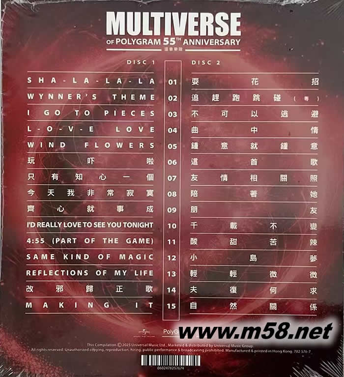 價格為估,以實到貨為準! MULTIVERSE OF CINEPOLY 40TH ANNIVERSARY 溫拿樂隊 (環球元宇宙系列2CD)(m58.net) 巨星超強結集,風光正史再現 香港,2025】廣東歌半世紀的情感、氣質與想像,從未息止。今年,我們以三大品牌里程作為時間聚焦點 —— 寶麗金 55 年、新藝寶 40 年、正東 30 年 —— 推出全新 “MULTIVERSE 系列”:以不同年代歌手為核心的55 款個人精選專輯,穿梭 1970 年代至今的多重宇宙,讓經典在今天再次閃耀;每款隨碟附送限量珍藏“樂魂卡”,在收藏、聆聽與互動中,打開屬于廣東歌的平行時空。