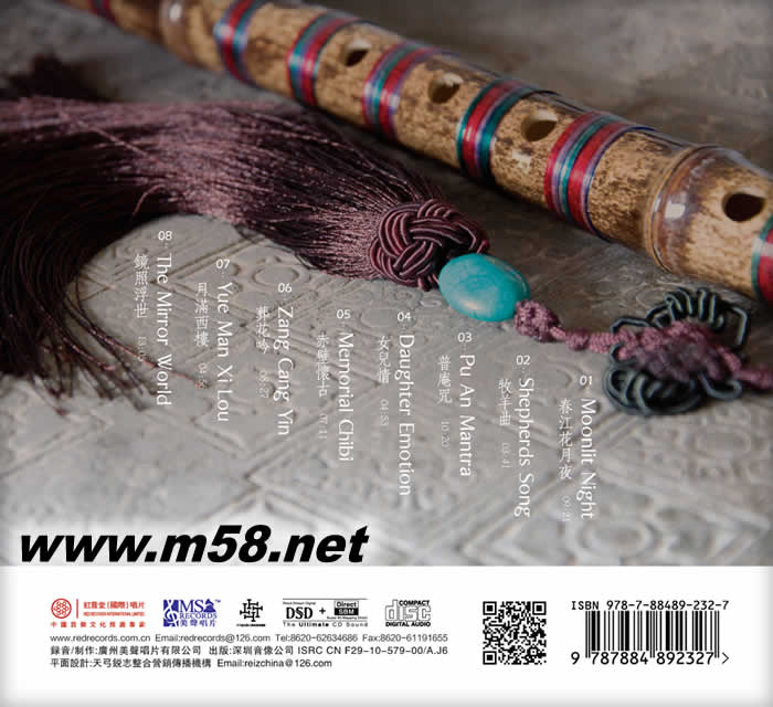 01. Moonlit Night 春江花月夜 09'21'' 古曲 編曲:張子盛 Ancient Music Arranger : Zhang Zi Sheng 02. Shepherds Song 牧羊曲 03'41" 曲:王立平 Compose: Wang Li Ping 03. Pu An Mantra 普庵咒 10'20" 古曲 編曲:張子盛 Ancient Music Arranger:Zhang Zi Sheng 04. Daughter Emotion 女兒情 04'53" 曲:許鏡清 Compose: Xu Jing Qing 05. Memorial Chibi 赤壁懷古 07'11" 曲:陳大偉 Compose: Chen Da Wei 06. Zang Cang Yin 葬花吟 08'27" 曲:王立平 Compose: Wang Li Ping 07. Yue Man Xi Lou 月滿(mǎn)西樓 04'56" 曲:蘇越 Compose: Su Yue 08. The Mirror World 鏡照浮世 13'05" 編曲:賀小帥 Arranger:He Xiao Shuai
