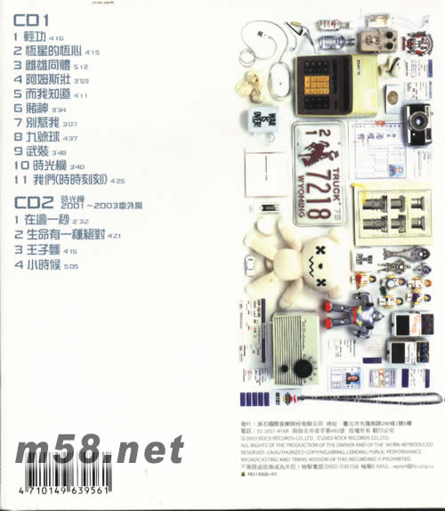 CD 1 1、輕功 2、恒星的恒心 3、雌雄同體 4、阿姆斯妝 5、而我知道 6、賭神 7、別惹我 8、九號球 9、武裝 10、時光機 11、我們(時時刻刻) CD 2 1、在這一秒 2、生命有一種絕對 3、王子面 4、小時候