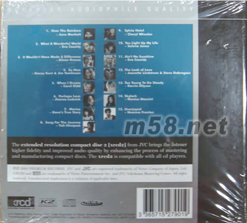 爵士紅伶BEST AUDIOPHILE VOICES第一輯XRCD(m58.net) 爵士紅伶,二十世界最佳發(fā)燒女聲覽聽版。一張匯聚了世界各地一流天后女星如:CAROL KIDD、 EVA CASSIDY、STACEY KENT 、JHENNA LODWICK、ALISON KRAUSS、JANE MONHEIT等等于一碟。打做了發(fā)燒界最佳女聲覽聽版專輯。每位巨星都施展了畢生“嗓藝”,演繹了十五首各國樂迷一致贊賞經(jīng)典金曲。人聲靚絕、質(zhì)感強烈、層次分明、定位準確、通透無比音色,加上粒粒巨星名曲,頂級發(fā)燒錄制,這份誠意[爵士名伶]大碟,足以令每位發(fā)燒樂迷怦然心動。