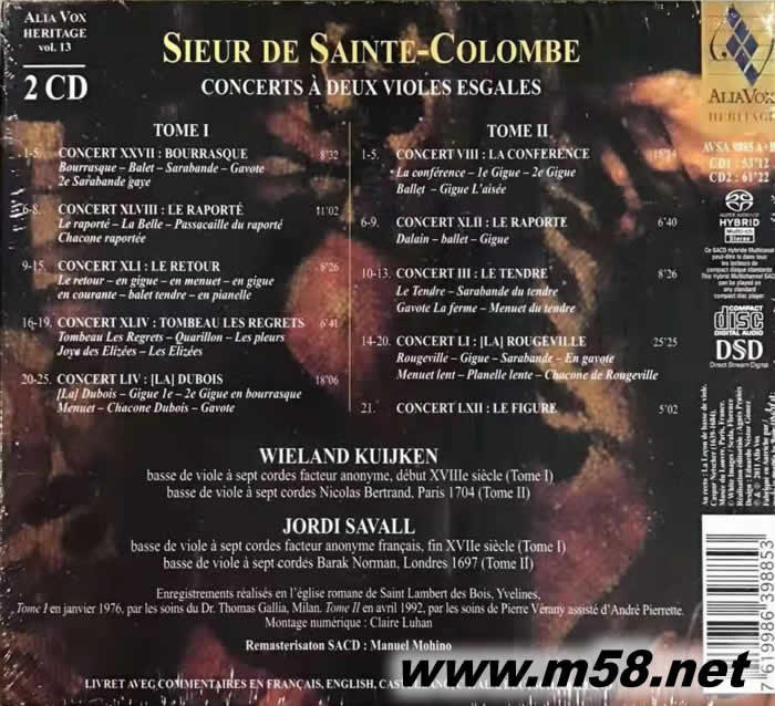 Sieur de Sainte-Colombe 圣• 柯隆貝: 雙古大提琴協奏曲(第1&2冊) 2 SACD(m58.net)