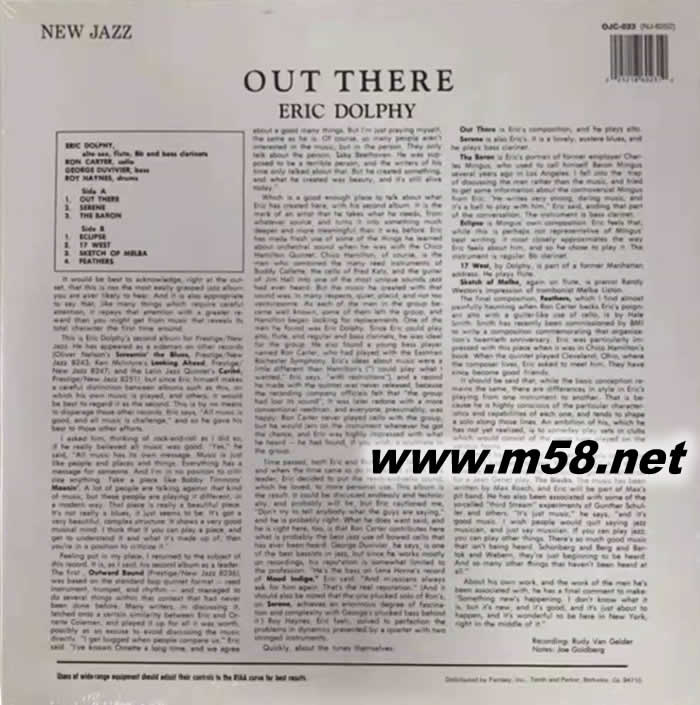 價格為估,以實到貨為準(zhǔn)! OUT THERE 爵士四重奏(薩克斯、大提琴、貝斯、鼓) 黑膠(m58.net) 爵士樂歷史上的全才,他能吹單簧管、低音單簧管、高音薩克斯風(fēng)和長笛,演奏風(fēng)格雖然擺脫了傳統(tǒng)爵士樂尤其波普曲風(fēng)的旋律結(jié)構(gòu),但卻并非朝前衛(wèi)難懂一去不返,他的吹奏利索、自由、干勁十足;專輯所體現(xiàn)的實驗態(tài)度、自由與即興的演奏,都在向傳統(tǒng)的爵士發(fā)起挑戰(zhàn)。 Eric Dolphy, alto sax, flute, Bb & bass clarinets Ron Carter, cello George Duvivier, bass Roy Haynes, drums