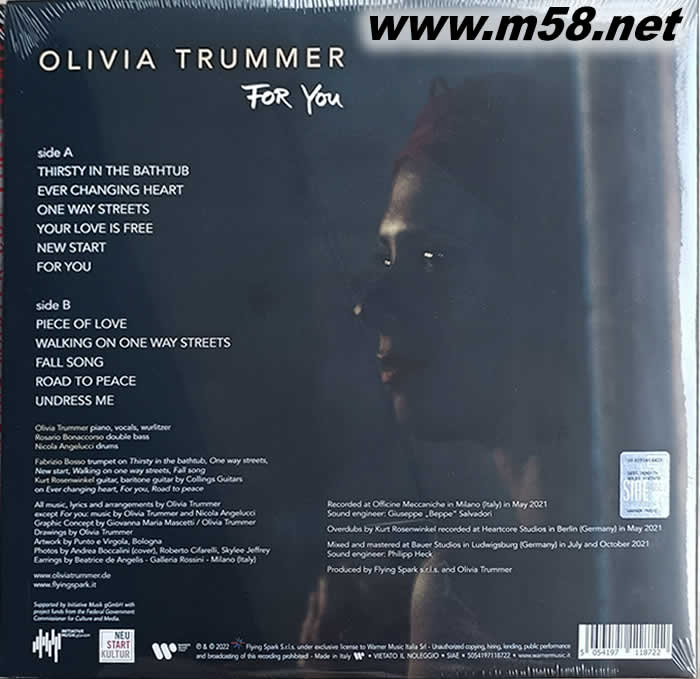 FOR YOU 爵士原創才女 黑膠(m58.net) 奧利維亞.頌瑪《FOR YOU 》LP 頌瑪是德國著名爵士樂作曲、歌唱和鋼琴手,多才多藝,擁有清澈明亮的聲線,加上其深厚的音樂根基,她對樂曲的精心編排融合其熟練和多元化的技巧,使她更能全面發揮每首演繹歌曲的特質,本張專輯是頌瑪對過去10年內親身經歷和見解的回顧。180克黑膠。