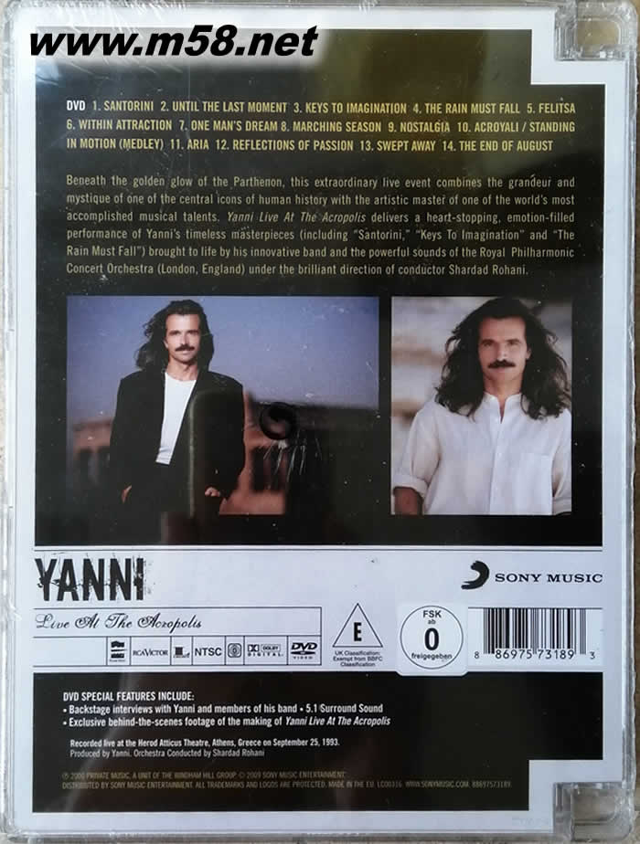 雅尼LIVE AT THE ACROLIS雅典衛城演奏會 DVD專輯背面圖片