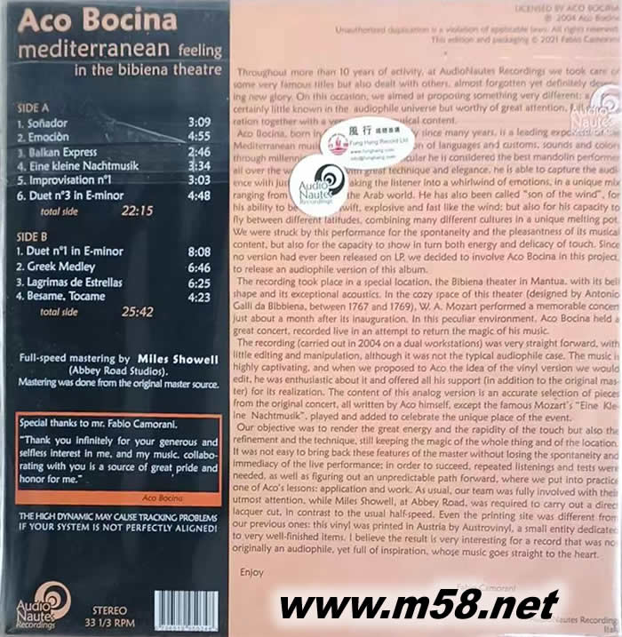 地中海的感覺在畢畢那劇院 MEDITERRANEAN FEELING IN THE BIBIENA THEATRE 黑膠專輯背面圖片