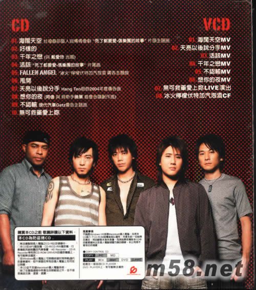 CD 01. 海闊天空(臺劇 "死了都要愛" 主題曲) 02. 好樣的 03. 千年之戀 04. 活該 (臺劇 "死了都要愛" 片尾曲) 05. Fallen Angel 06. 甩開 07. 天亮以后說分手 08. 想你的夜 09. 不認輸 10. 無可救藥愛上你 VCD 01. 海闊天空 MV 02. 天亮以后說分手 MV 03. 活該 MV 04. 千年之戀 MV 05. 不認輸 MV 06. 想你的夜 MV 07. 無可救藥愛上你LIVE 演出 08. 冰火檸檬伏特加汽泡酒CF