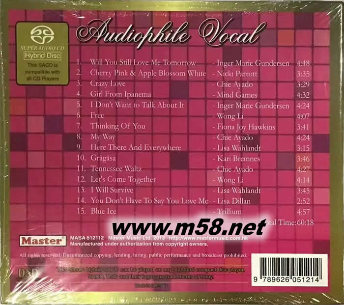 AUDIOPHILE VOCAL 至尊發燒女聲 SACD專輯背面圖片