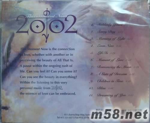此時此刻THIS MOMENT NOW(m58.net) REAL MUSIC 旗下二人組合2002全新大碟共收錄11首全新作品,全碟以愛作為主題,開首以浪漫柔情的鋼琴訴說著一段愛情故事,SUNNY DAY 輕快得令人神往,發燒級巨獻,定位、音場絕對出色標準,精彩!