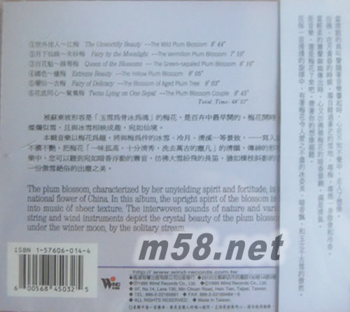 您聽得到暗香浮動的簫音、大雪紛飛的長笛,以及橫枝斜影的古琴,徹底領略梅花的千古傲然。風靡坎城唱片大展,清新的旋律深獲回響.....堪稱人氣最旺的花樂專輯