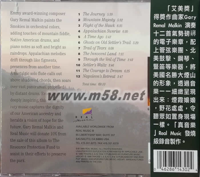大煙山THE NATIONAL PARKS SERIES Gary Remal Malkin 新世紀(jì)純音樂專輯背面圖片