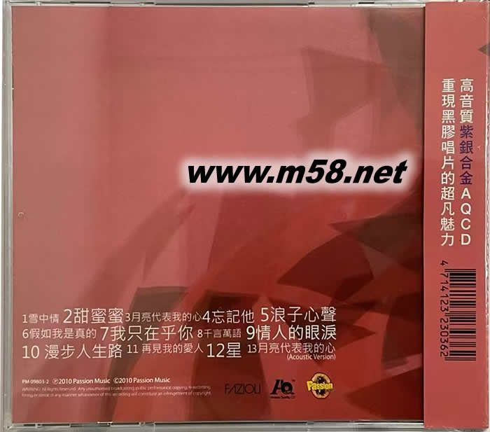 陳潔麗 演唱鄧麗君名曲香港演唱會 / LILY - Sing Teresa Live in Hong Kong AQCD專輯背面圖片