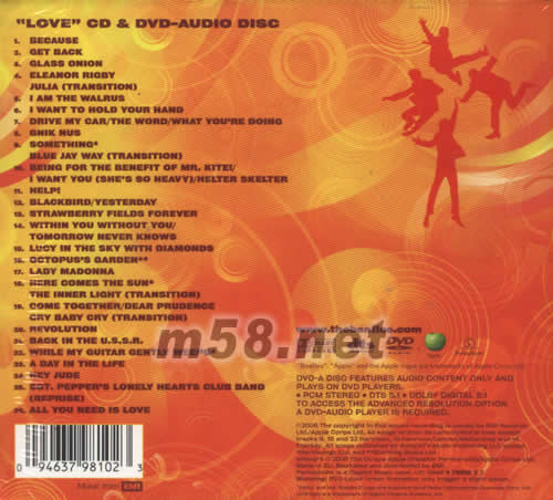 THE BEATLES( LOVE)(m58.net) SPECIAL 2 DISC EDITION FEATURES 26 TRACKS RE-WORKED BY GEORGE & GILES MARTIN INCLUDES STEREO CD+AUDIO 5.1 DVD. THE BEATLES AS YOU VE NEVER HEARD THEM BEFORE…