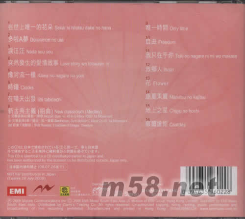 01. 在世上唯一的花朵 Sekai ni hitotsudake no hana 02. 多啦A夢 Doraemon no uta 03. 淚汪汪 Nada sou sou 04. 突然發生的愛情故事 Love story wa totsuzen ni 05. 像河流一樣 Kawa no nagare no yoni 06. 時鐘 Clocks 07. 在晴天出發 lihi tabidachi 08. 新古典主義(組曲) New classicism(Medley) (Ⅰ)交響曲第40番第一樂章 Mozart Sym no.40 in G Minor K550 1st Movement (Ⅱ)交響曲第5番[命運]第一樂章 Beethoven:Sym No.5 in C Minor Op.67 1st Movement (Ⅲ)歌劇[理發師]序曲 Rossini:'ll barbiere di Siviglia'Overture 09. 唯一時間 Only time 10. 自由 Freedom 11. 我只在乎你 Toki no nagare ni mi wo makase 12. 故鄉人 Ihojin 13. 花 Flower 14. 盛夏果實 Manatsu no kajitsu 15. 地上之星 Chilyo no hoshi 16. 察爾達斯 Casrdas