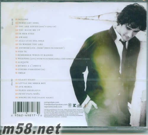 典藏喬許 世紀(jì)美聲唯一精選A Collection 2CD(m58.net) 全球逾2千5百萬張專輯銷售的保證,本世紀(jì)絕對(duì)不容錯(cuò)過的撼動(dòng)心靈之聲! ★ 雙CD收錄22首喬許個(gè)人歷年最鐘愛的優(yōu)質(zhì)佳作,包含: ★ 3首全美抒情榜冠軍曲(「You Raise Me Up」、「To Where You Are」、「Alla Luce Del Sole」+5首 TOP 20暢銷單曲! ★ 3首先前專輯CD未收錄的作品! ★ 2007全美年度最暢銷專輯“Noel”中的5首圣誕名曲+西班牙文版的「Silent Night」!