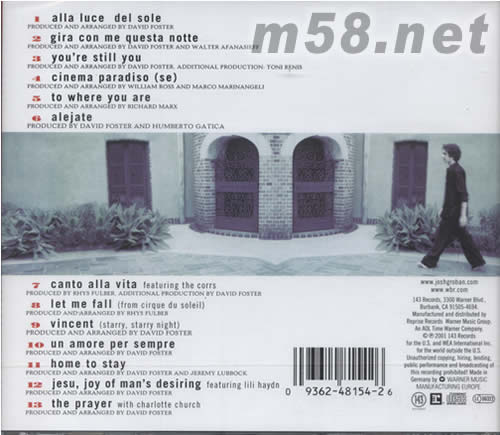JOSH GROBAN同名專輯背面圖片