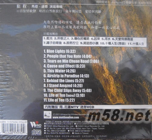 IN SO MANY WORDS 旅程(馬修·連恩演唱專輯)(m58.net) 出道五年,第一張個人演唱專輯 十一首旅情歌聲,唱出自然與旅行,童年與回憶,愛情與別離。他的旅程,穿越時光隧道,沒有今天明天。 大自然吻過的喉嚨,清亮真誠的歌聲,原野上第一匹放聲高歌的狼,和你一起窩心收藏。