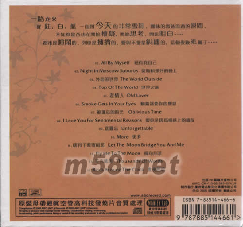 1.只有我自己 2.莫斯科郊外晚上 3.外面的世界 4.世界之巔 5.老情人 6.煙霧迷蒙你的雙眼 7.被遺忘的時光 8.愛你是因為情感上的緣故 9.意難忘 10.更多 11.明月千裹寄相思 12.飛向月球 13.千言萬語 14.書夜搖滾