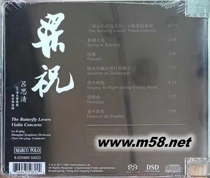 梁祝 The Butterfly Lovers SACD 黑色封面(m58.net) 第34屆帕格尼尼小提琴比賽金獎得主“呂思清”經典作品“梁祝”獲各界高度評價演奏技巧超群,錄音效果絕佳。現由“老虎魚”重新母盤錄制、奧地利壓碟,音質更清晰,層次感更豐富。