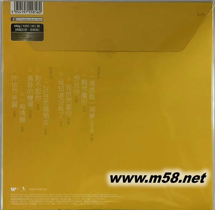 價格為估,以實到貨為準! 這場游戲那場夢 透明黃 黑膠(m58.net) 王杰 ● 這場游戲那場夢 [典藏彩膠.透明黃] 如果一場游戲之后是一場夢 夢醒后 你是你 我是我 你熟悉的歌與記憶 你的青春 你的回憶 你的未來 我的歌聲 我是王杰 你好嗎? ‘這場游戲那場夢’ 十首全新創作・制作・演唱專輯 孤獨的鷹 飛在只屬于自己的那片天空 耳順之年 王杰以不同的心境意象 唱著 一場游戲一場夢 (結束篇) 等十首歌 安撫現世每個夢醒、心痛的靈魂心 不再流浪 終在他的歌裡安歇。停泊。靠岸 從‘一場游戲一場夢’到‘這場游戲那場夢’, 在而立與不惑中間,王杰的歌曲, 陪伴你我,度過每一個歡笑悲傷的日子, 每個人心上,都有好多杰歌,在〈夢境・游戲・愛情〉之間擺盪 —“為了愛夢一生”、“夢與游戲之間”、 “夢在無夢的夜裡”、 “如何相信這是夢”... 都銘心刻骨的烙印在你我的生命旅程中。 “我們因夢想而偉大,因痛苦而茁壯” (We Grow Great By Dreams, Grow Strong By Pains.), 這是王杰獻給所有在現實中艱苦奮戰的朋友,惕勵自己的話。 曾經璀璨,也失落過,熱愛創作與歌唱的王杰曾說: “只要還有一位歌迷,愿意聽他唱歌, 他愿意終其一生,為歌唱和音樂而活”。 重諾的王杰,在出道35周年的日子, 發行‘這場游戲那場夢’專輯, 將再次安撫每個不安與傷痛的靈魂。