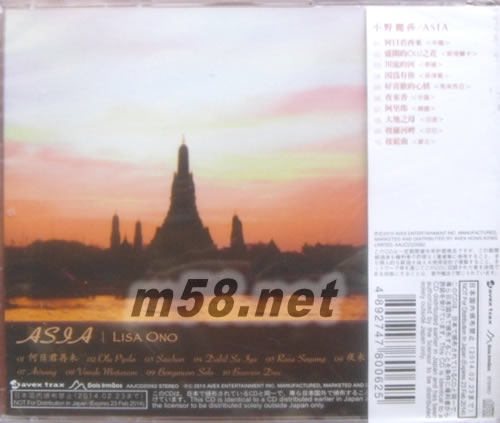 亞洲鄉(xiāng)愁 ASIA(m58.net) 從1999年開始展開的「小野麗莎音樂之旅」,在各個(gè)國(guó)家的各式曲風(fēng)中,遍歷了爵士,夏威夷,義大利,法國(guó)香頌,非洲及中東,拉丁,靈魂樂等的經(jīng)典名曲,以Bossa Nova灌注入新的靈魂。不斷環(huán)游著世界的「音樂之旅」這次終於抵達(dá)了亞洲。 ●曾經(jīng)數(shù)次在臺(tái)灣以及亞洲各國(guó)開唱的小野麗莎,在各地演唱會(huì)中都曾加入演唱當(dāng)?shù)亟?jīng)典名曲的橋段,除了收錄這些樂曲外,也收錄了符合這次主題的新曲。 ●收錄以中文演唱的「何日君再來」「夜來香」等,還包含韓國(guó)、菲律賓、泰國(guó)、斯里蘭卡、印度、印尼、馬來西亞、蒙古等地眾所皆知的經(jīng)典名曲。