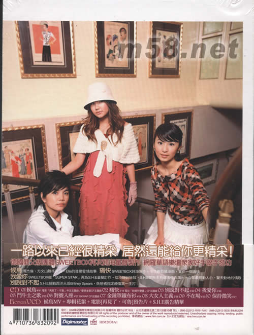 價格為估,以實到貨為準! ENCORE安可!!(首批限量臺灣預購版)(m58.net) 請點看產(chǎn)品大圖 預購贈品:S.H.E天藍色精美肖像資料本一個(A4規(guī)格10頁)長*寬=31*24CM 產(chǎn)品長*寬=19*14CM 永遠聽不膩,永遠受不夠 痛快唱努力活,讓青春精采ENCORE 一路以來已經(jīng)很精彩,居然還能給你更精彩! 德國教你級團體SWEETBOX再次跨海量聲制作,網(wǎng)羅華語樂壇眾家好手聯(lián)手發(fā)功