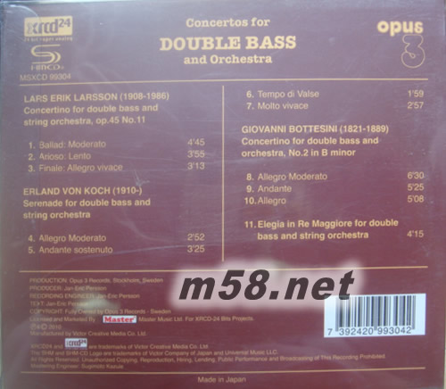 低音皇 OPUS 3 FOR DOUBLE BASS XRCD+SHMCD專輯背面圖片