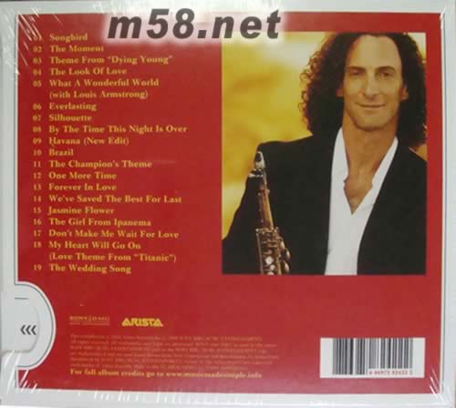 SONGBIRD(m58.net) 世界頂尖色士風手Kenny G 音樂旅程最窩心回意Songbird-the ultimate collectio 收錄19首簽名式完美代表作包括: songbird/theme from"dying young"/forever in love /fasmine flower/the wedding song/don;t make me wait for love/the look of love/ my heart will go on/what a wonderful world...