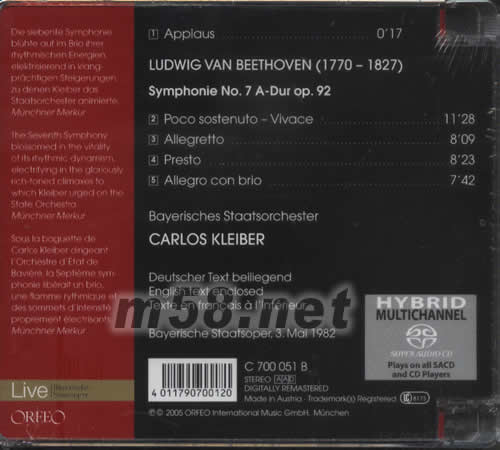貝多芬第7交響樂BEETHOVEN SYMPHONIE NO 7 CARLOS KLEIBER指揮SACD專輯背面圖片