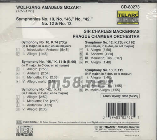 Symphony No. 10, K.74 in G major 1. I. Introduction; Andante 2. II. Allegro Symphony No."46," K.111b in C major 3. I. Allegro 4. II. Andante 5. III. Menuetto; Trio 6. IV. Allegro molto Symphony No. "42," K.75 in F major 7. I. Allegro 8. II. Menuetto; Trio 9. III. Andantino 10. IV. Allegro Symphony No. 12, K.75b in G major 11. I. Allegro 12. II. Andante 13. III. Menuetto; Trio 14. IV. Allegro Symphony No. 13, K.112 in F major 15. I. Allegro 16. II. Andante 17. III. Menuetto; Trio 18. IV. Molto Allegro