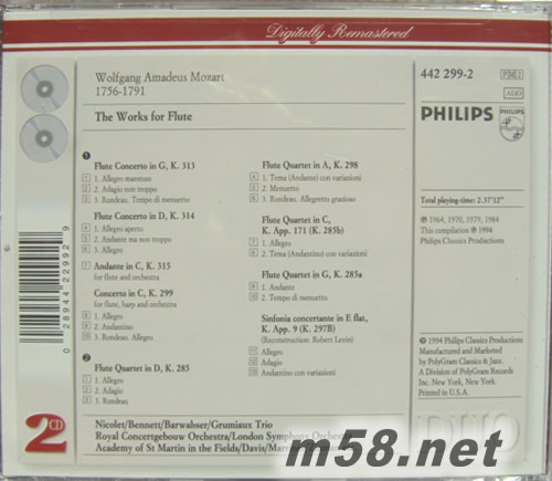 莫扎特長笛作品THE WORKS FOR FLUTE(PHILIPS系列老版)專輯背面圖片