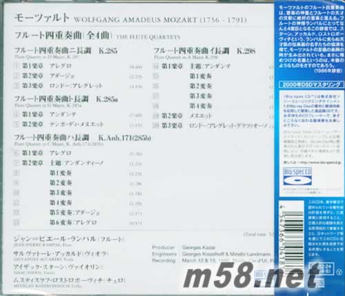 莫札特 長(zhǎng)笛四重奏 藍(lán)光CD 日本版專輯背面圖片