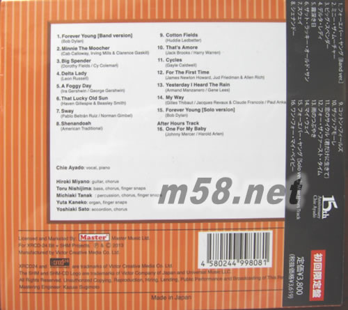 永遠(yuǎn)年青FOREVER YOUNG ( XRCD+ SHMCD ) 初回限定盤(m58.net) 日本爵士天后綾戶智惠出道十五週年紀(jì)念專輯 Forever Young,夥拍多位樂手演繹16首經(jīng)典不朽名作, JVC以xrcd 24加上HR Cutting混音再造,並以SHMCD印片,音色更加通透自然。