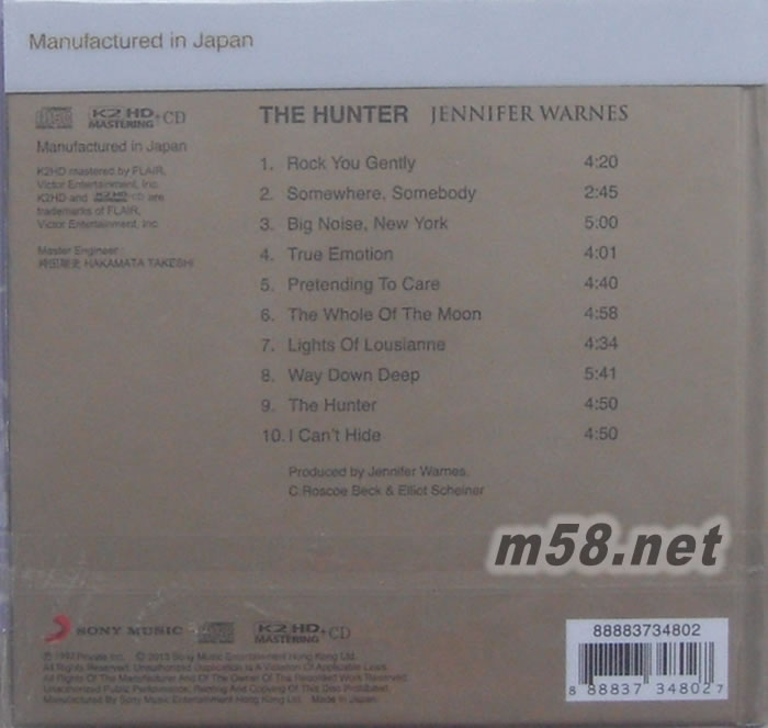 The Hunter 獵人 K2HD(2017SONY 特價系列K2HD)專輯背面圖片