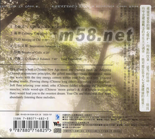 在這輯結合針灸原理創作的[心靈針灸]里,針對您的心靈穴位,用流暢圓通古箏放松您的精神,加上柔和的飄逸的長笛、排蕭柔順您的情緒,再以樸實穩重的中胡、二胡放松您的肌肉,然后用清脆透亮的木琴、竹笛清醒您的大腦。流暢愉快、圓潤的旋律,讓您的身、心、靈彷佛被名師針灸過一般,全身氣血舒暢、陰陽調和,健康又愉快。