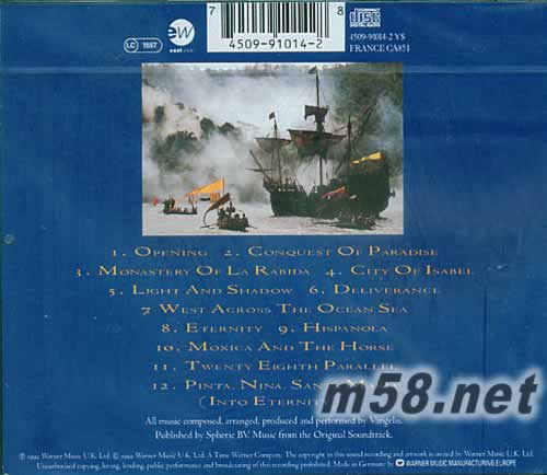 vangelis·1492 conqvest of paradise 征服天堂 電影原聲專(zhuān)輯背面圖片