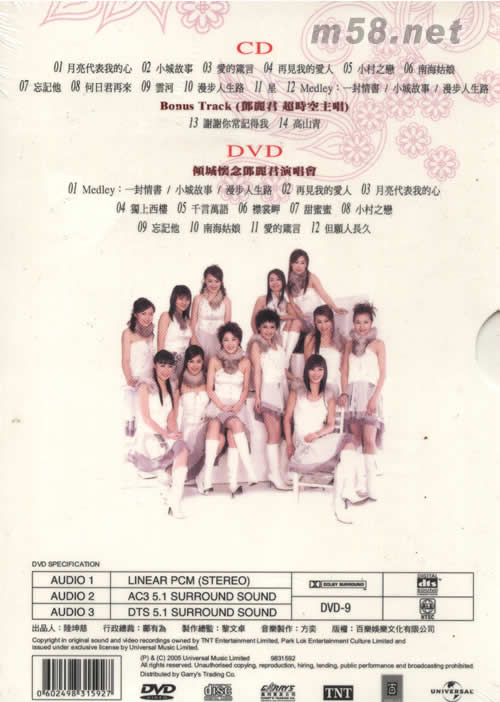 價格為估,以實到貨為準! 鄧麗君紀念專輯(m58.net) DVD-9 鄧麗君10周年紀念全新CD+DVD套裝嶄新演繹多首金曲 CD嘉賓監制RICHARD YUEN 小城故事 漫步人生路 月亮代表我的心 再見我的愛人 小村之戀 DVD傾城懷念鄧麗君2005現場音樂會