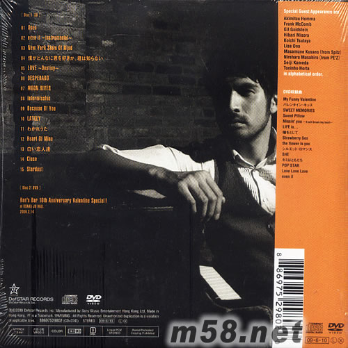 CD 01. Open 02. even if ~instrumental~ 03. New York State Of Mind 04. 僕がどんなに君を好きか、君は知らない 05. LOVE ~Destiny~ 06. DESPERADO 07. MOON RIVER 08. Intermission 09. Because Of You 10. LATELY 11. わかれうた 12. Heart Of Mine 13. 白い戀人達(dá) 14. Close 15. Stardust DVD Ken's Bar 10th Anniversary Valentine Special! 2009.2.14