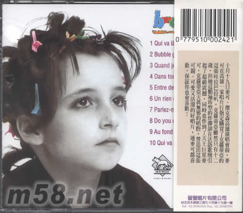 價(jià)格為估,以實(shí)到貨為準(zhǔn)! BROUHAHA哇拉巴拉叭(m58.net) 法語(yǔ)歌壇最可愛(ài)的小精靈,邁可杰克遜在高雄演唱會(huì)時(shí)專程買了這張唱片,你知道為什么嗎? 克蘿蒂亞雖然只有十二歲,但她這顆視珍型的炸彈動(dòng)在法語(yǔ)歌壇引起了超級(jí)震撼!