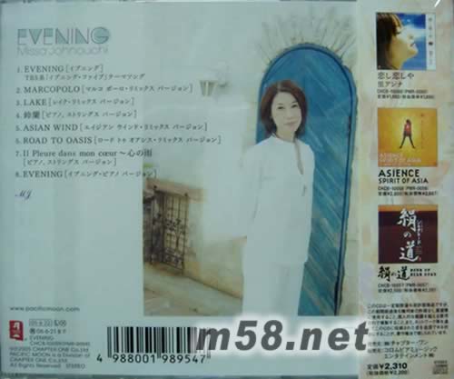 01. EVENING (イブニング) 「TBS系 イブニング・ファイブ テーマソング」 02. MARCOPOLO(マルコ ポーロ・リミックス バージョン) 03. LAKE(レイク・リミックス バージョン) 04. 鈴蘭(ピアノ、ストリングス バージョン) 05. ASIAN WIND(エイジアン ウインド・リミックス バージョン) 06. ROAD TO OASIS(ロード トウ オアシス・リミックス バージョン) 07. Il Pleure dans mon coeur ~心の雨(ピアノ、ストリングス バージョン) 08. EVENING (イブニング・ピアノ バージョン)