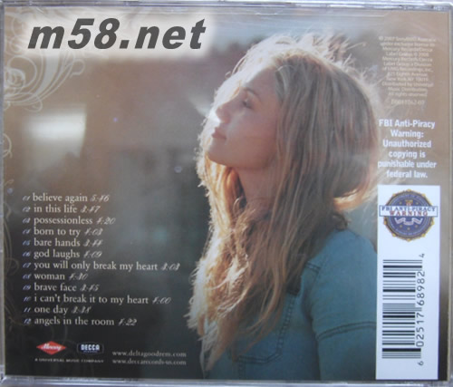 1. Believe Again 2. In This Life 3. Possessionless 4. Born to Try 5. Bare Hands 6. God Laughs 7. You Will Only Break My Heart 8. Woman 9. Brave Face 10. I Can't Break It to My Heart 11. One Day 12. Angels in the Room