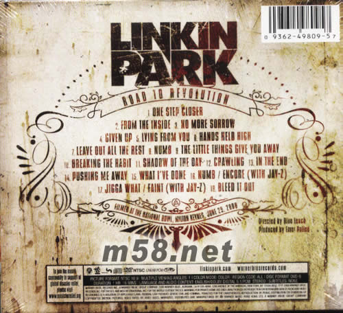 DISK 1 CD 1. One Step Closer 2. From The Inside 3. No More Sorrow 4. Given Up 5. Lying From You 6. Hands Held High 7. Leave Out All the Rest 8. Numb 9. The Little Things Give You Away 10. Breaking the Habit 11. Shadow of the Day 12. Crawling 13. In the End 14. Pushing Me Away 15. What I`ve Done 16. Numb/Encore 17. Jigga What/Faint 18. Bleed It Out (There will be a slight edit to the sing-along portion only on the CD) DISK 2 DVD 1. One Step Closer 2. From The Inside 3. No More Sorrow 4. Wake 5. Given Up 6. Lying From You 7. Hands Held High 8. Leave Out All the Rest 9. Numb 10. The Little Things Give You Away 11. Breaking the Habit 12. Shadow of the Day 13. Crawling 14. In the End 15. Pushing Me Away 16. What I`ve Done 17. Numb/Encore 18. Jigga What/Faint 19. Bleed It Out