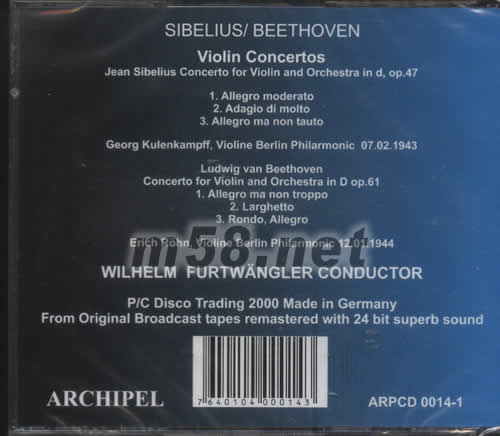 SIBELIUS BEETHOVEN小提琴協(xié)奏曲專輯背面圖片
