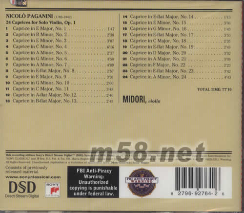 帕格尼尼24首當(dāng)其沖MIDORI PAGANINI專輯背面圖片