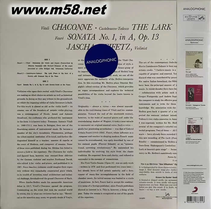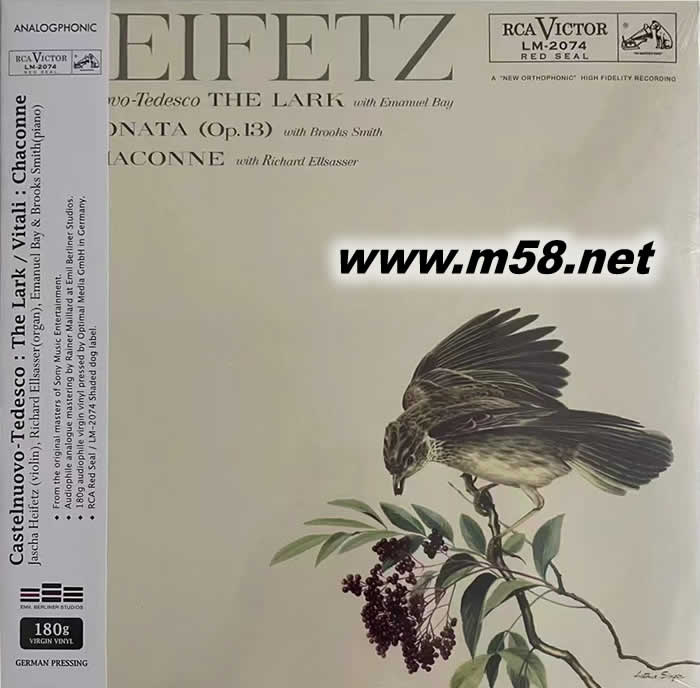 云雀 THE LARK 黑膠(m58.net) 小提琴界的一代帝王海菲茨,曾被指揮泰斗托斯卡尼尼贊為“唯一能演奏得完美無缺的藝術家”,在RCA經典紅線系列錄音。包括:福雷奏鳴曲等,180克黑膠,純模擬制作。