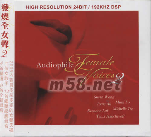 發(fā)燒全女聲2(m58.net) 2006內(nèi)容最多采多姿的女聲天碟 七位女歌手 13首鏗聽級靚錄音 4首精選 9首全新錄音 SUSAN WONG 性感而又感性的歌聲無需再介紹,令人驚喜的是其他幾位歌手各有其吸引人的特色,MIMI LO的活潑,LRENE 和WINNIE AU的女人味,MICHELLE TSE的清新,聽這張CD會感覺得多采多姿,加上栩栩如生的音效,這是一張不容錯(cuò)過的試音天碟.