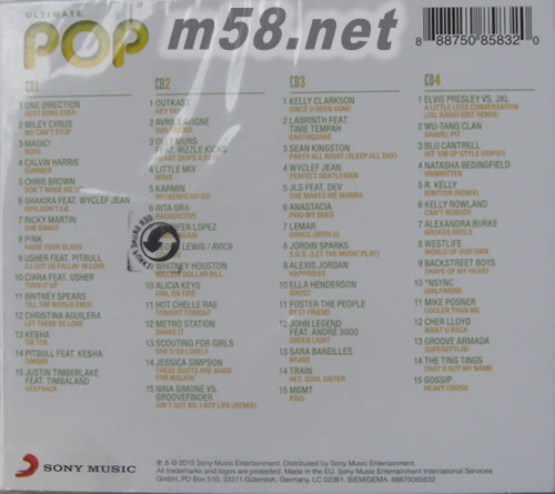 Ultimate... Pop 終極流行榜 (4CD)(m58.net) Sony Music 全新<終極>系列4CD超級冠軍合輯★ ◎收錄包括一世代、凱文哈里斯、嘻哈斗牛梗、賈斯汀、麥莉、亞瑟小子、布蘭妮、艾薇兒、珍妮佛洛佩茲、瑞奇馬汀、克里斯小子、夏奇拉等流行天王天后超級金曲,嗨翻整個夏天