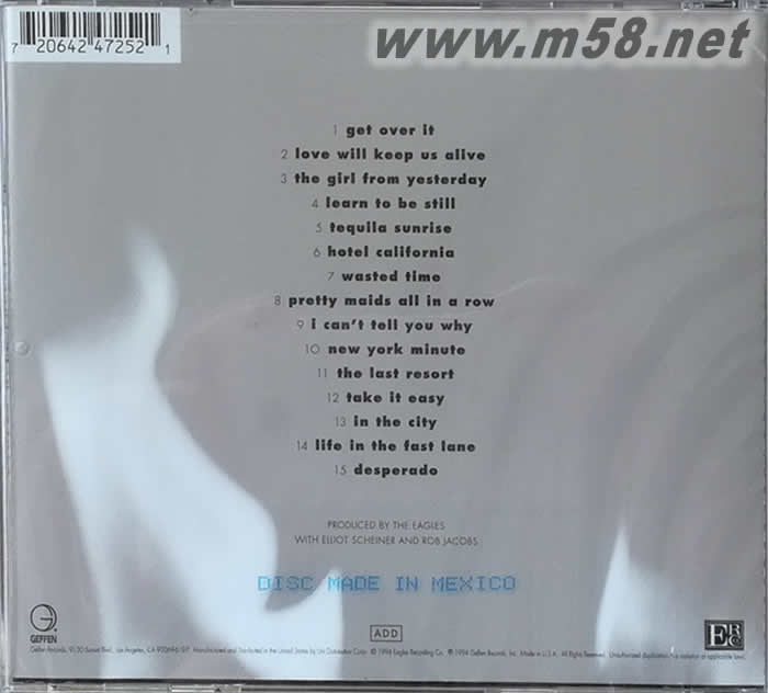 1. Get Over It 2. Love Will Keep Us Alive 3. The Girl From Yesterday 4. Learn To Be Still 5. Tequila Sunrise 6. Hotel California 7. Wasted Time 8. Pretty Maids All In A Row 9. I Can't Tell You Why 10. New York Minute 11. The Last Resort 12. Take It Easy 13. In The City 14. Life In The Fast Lane 15. Desperado