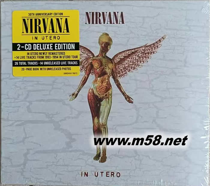 IN UTERO 雙CD DELUXE EDITION(m58.net) Nirvana,中文譯為“涅磐”,佛語中說,“涅磐”意味著無生、無造、無變動的終極存在,是超脫生死的境界,這是樂隊主唱Kurt Cobain的理想。事實上,他的命運和貓王極為相似,生命在搖滾中燃燒,注定英年早逝。 90年代,美國的失業危機重新抬頭,朋克樂在音樂界再度爆炸,西雅圖的Grunge音樂風暴引起了強烈的反響與轟動,Nirvana就是在這樣的背景下誕生的,樂隊由Kurt Cobain和前The Melvins的成員 Krist Novoselic組建,Dave Grohl在錄制第二張唱片(Nevermind)固定了的鼓手位置,Kurt Cobain負責主音和吉它, Chris負責低音吉它。